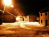 The village of Imber, evacuated in 1943 and used as a military training facility ever since. It is only open to the public for 50 days a year and access into the centre of the village is out of bounds. There also is no electricity supply. For 3 nights in 2003, Artangel had special permission to hold an event to re-animate the village and the public were allowed into the restricted zone after ordnance clearing. Therefore this view of the village illuminated at night is a rare scene. |