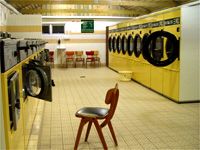 Here is a standard view of a church and a launderette.