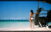 A woman in a white tie-side bikini stands holding the edge of a plam shelter, looking out to sea. Taken in the Dominican Republic on the isolated beach sandbar of Cayo Paraiso (Paradise Island.)