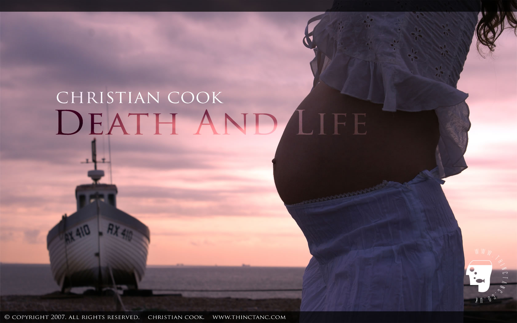 A female pregnant midriff in white lace contrasted with an old fishing boat against the pastel shades of the early dawn.