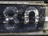 The figure '80' stencilled onto the side of an old wooden fishing boat.
