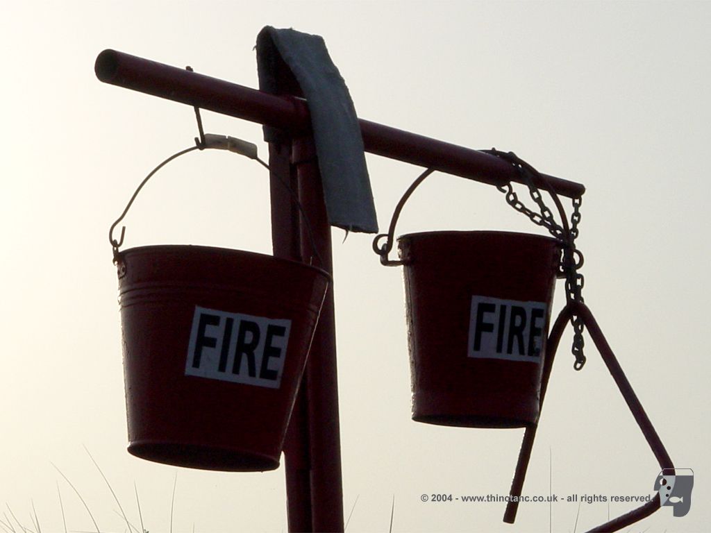 Fire buckets.