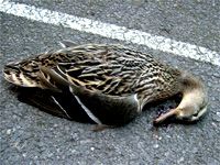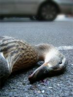 A friend of mine snapped this image of a dead duck in the car park where I work. This is a very scientific/analytical shot documenting the fact that there was a dead duck in the car park | |