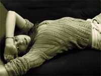 Female sunbathing. By dropping to the floor here, we have replaced the horizon with a contoured figurescape. | |