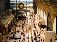 The main hall of the Musee D'Orsay in Paris looks like an intricate model. It needn't take a helicopter or crane to avheive these type of views. The catwalks spanning the ends of the museum provided this shot, but hills, towers and other tall buildings can also provide a similar vantage point. Also, you don't need to get up very high in order to escape the standard eye-level shot. A small set of steps can be enough. |
