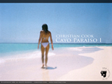 A female in a white tie-side bikini walks along golden sand with turquoise water and blue sky visible in the background. Taken in the Dominican Republic on the isolated beach sandbar of Cayo Paraiso (Paradise Island.)