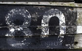 The figure '80' stencilled onto the side of an old wooden fishing boat.